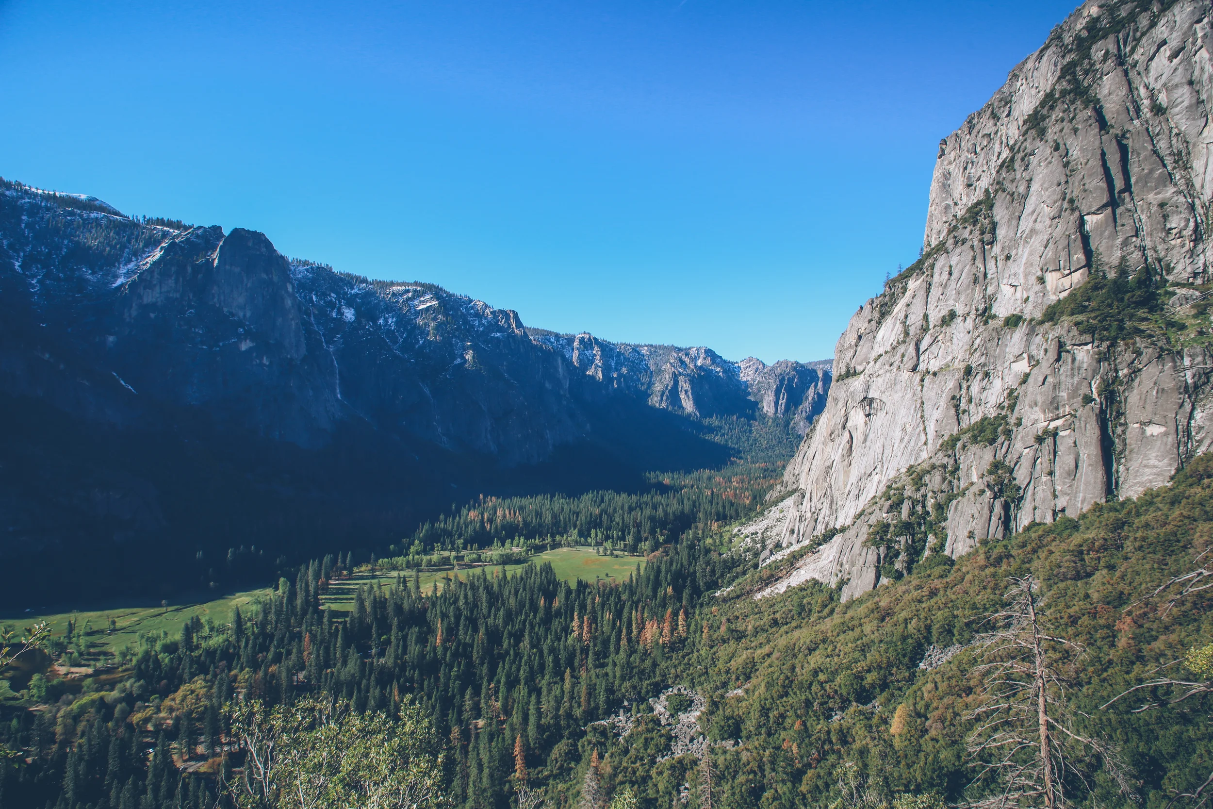 If you continue about a mile past the top of the falls, you'll end up at Yosemite Point, which offers amazing views of the valley floor.
