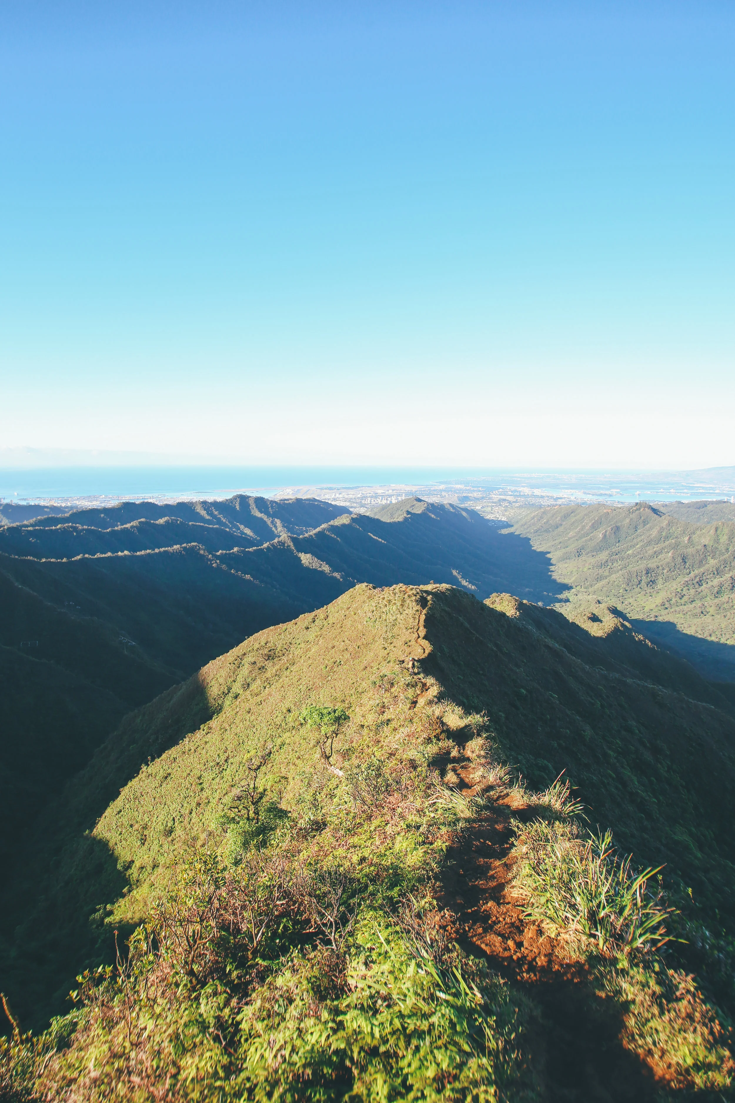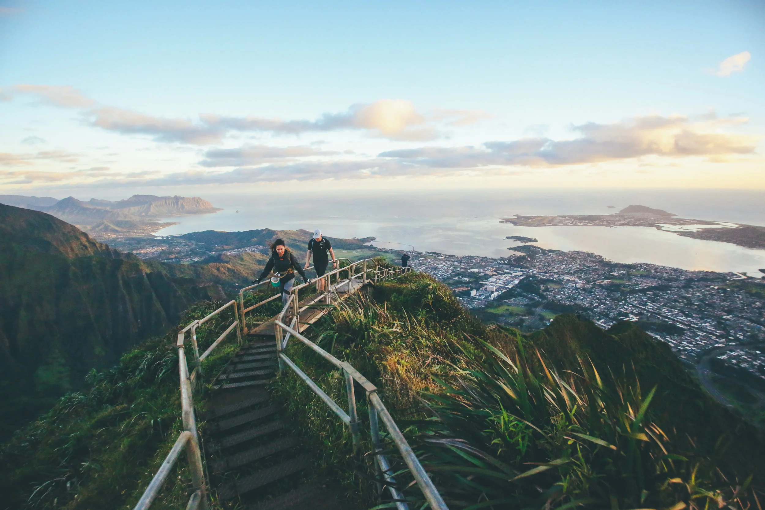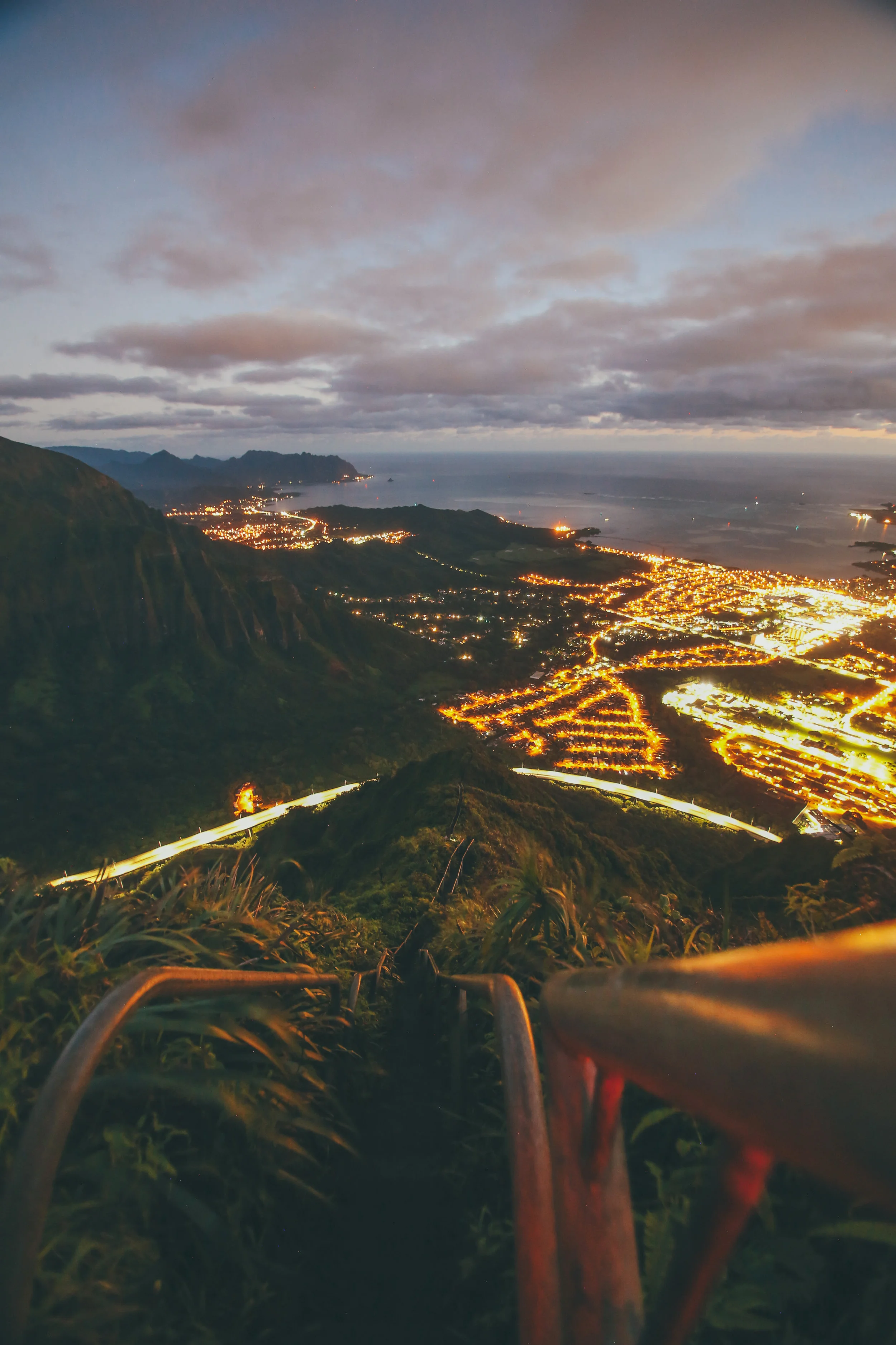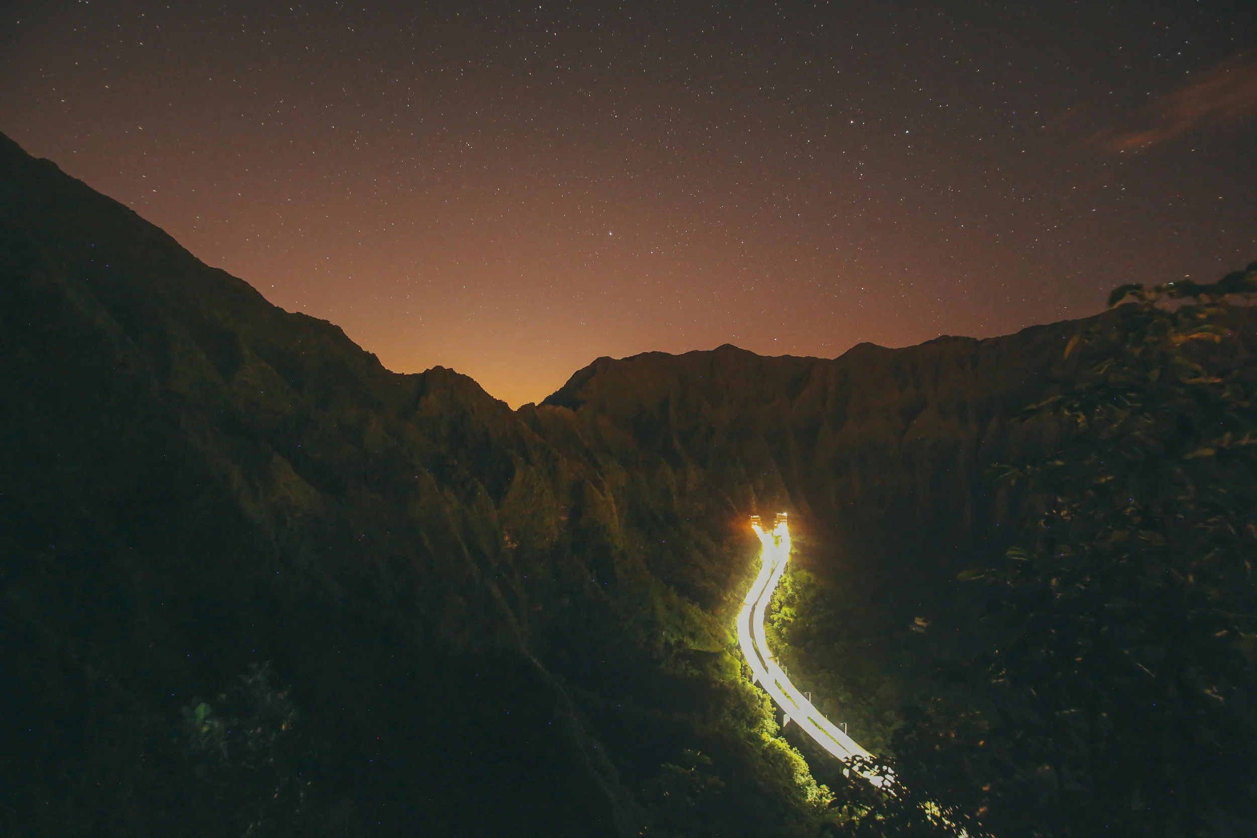 Anyways, got up at 3, met up with an awesome friend that knew the route at 330, and hit the trail by 4! The first mile-ish was in pitch black with our headlamps bushwhacking through this bamboo forest to find the bottom of the stairs, and we had to do this all very discreetly. The hike is on private land and is definitely illegal, so there is a guard posted down below 24/7 which meant that we had to tip-toe around until we got past him. Not even a day in Hawaii and we were already doing the most illegal hike in the state. Go millenials!